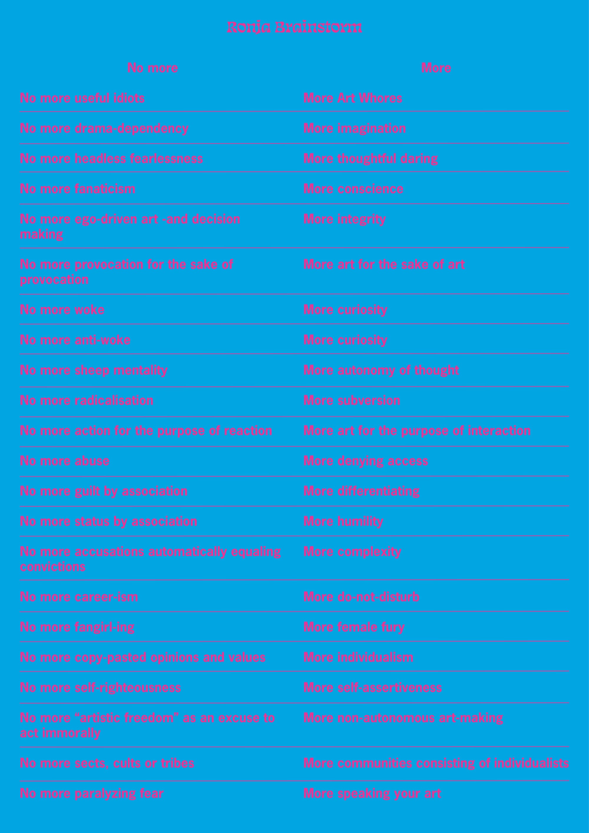 24 hours later, something’s telling me it’s time to go home. Maybe it’s Roald’s friend, NPC117’s more and more aggressive attitude towards me. “What do you think about Horror House’s collaboration with Guy Bug?”, he asks me. We’re still standing around on the street, Roald is inside the late night shop with other people purchasing a box of beer, Nero and Thea are standing around half-way listening to my conversation with NPC117. I know I’m entering a danger zone by involving myself further in this interaction. But hey, he’s Roalds good friend, and Roald is one of the smartest people I know, so how hopeless can NPC117 be? “I was really hooked in the beginning. I thought Guy Bug and Horror House’s idea for the Venice Biennale was quite interesting. Their original idea was that 100 different artists, from all over the world, should each create their own individual interpretation of Titian’s The Rape of Europa”, I tell NPC117, who’s looking at me with an outmost look of concentration on his long, pale face. “I thought it was an interesting approach to curate the American Pavilion. But I don’t really care for Bug’s political ideas though. They’re pretty much the opposite of how I want to see the world evolve myself”, I add, and light up a cigarette. “What do you thi…”, I almost get to ask, but before I can finish my sentence, NPC117 interrupts me: “What do you think about muslims in Europe?”, he asks. I take a deep breath and inhale my cigarette while I contemplate this super random question of his. It’s obviously a trap. Sadly, our conversations has now turned into a test in which I’m subject to NPC117’s self-entitled need for proving him and his judgemental friends right: That their hate towards me is totally justified, and that I am in fact a fascist! Or I answer the only thing that would be, in these characters minds, acceptable: “Muslims in Europe are my favourite thing in the world! I can’t get enough of them! I hope to become one myself one day!!”. Total surrender. Though they might not even accept this, coming from me, cause they’ve apparently already collectively decided, a long time ago, that I am absolute trash. I decide to take the high road and just share my honest, current idea on NPC117’s attack disguised as a question: “Generally I have nothing against muslims in Europe. But it’s obvious that there are cultural differences that cause problems with integration. I do think Europe has the resources to deal with these issues though”. I speak softly and slowly. Make sure I choose my words wisely, so they can’t be misinterpreted. I make an effort to keep calm. NPC117 releases his sturdy gaze from my face, looks down at the ground and sighs resignedly. “Your answer is only okay”, he says and shrugs his shoulders. Oh, is daddy disappointed? I think to myself, as I feel a stench of anger presenting itself inside of me. Who the fuck made this man president of the world? High judge of moral order? What a despicable, patronising way of engaging with me. Has he been feeling this way towards me the entire time during our conversation? That he’s doing me a favour by talking to me? Does he think he’s here to teach me a lesson, make me understand something I’ve been blind to, up until he sacrificed 20 minutes of his life to help me out? Or rather, is his sole motivation to talk to me that he’s finally gotten a chance to put me to a well-deserved test and get something super “problematic” out of me, so he can go back to his group of hysterically intolerant friends and tell them that they were all right? What the fuck is this? But before I get to remove myself from this more and more uncomfortable situation, NPC117 breaks out in a rant about how much he loves muslims: “I think they are an enrichment to our culture! I think muslims make our world a better place! I love muslims! Look how many great muslims there are here on the Eisenbahnstraße! Look at all of these fantastic food shops around, all run by fantastic muslims!”, he goes on an on, and I just stand there, silently, smoking my cigarette, listening to him, while it takes me all of the power I don’t have to not laugh. Finally he stops and looks at me, waiting for a reaction, I suppose. I nod my head and smile. “Sure, I’m not contradicting you”, I say, and NPC117’s eyes suddenly turn frozen. “Why are you getting defensive now?”, he asks me, his incredibly long face even longer now, “I’m not getting defensive, NPC117. You are”, I say while Roald and the rest come out of the late night shop with our drinks and Nero and Thea approach me to ask what the hell is going on. “I think I’m done talking to you now!”, NPC117 declares, looking like that one stone-face emoji I’ve been using a lot lately when chatting with my friends. Well, there you have it. I was unknowingly being put to an exam in political correctness, and now he’s decided I failed, hence he’ll be sleeping sound tonight. He turns around and pulls Roald aside, “Can I talk to you for a second?”, NPC117 asks him. And tell him what, exactly? That I didn’t say how much I love muslims in Europe and that Roald should stop being friends with me immediately and at best call me out on Instagram as well? Also, wouldn’t this be my cue to go home now? But, of course, out of sheer stubbornness, I decide to climb the stairs to Roald’s apartment with everyone else. I have a right to be here. Roald invited me. He’s my friend and he wants me to be here. And up until NPC117 started having a meltdown, I was actually having a pretty good time. And Nero and Thea are here too. They’re cool. But as we climb the stairs, the mood is weird. No one is saying anything to each other, and I’m in an inner dialogue with myself, making a serious effort to not participate in further escalation of this already pretty fucked up situation. Inside Roalds apartment, I go sit by the